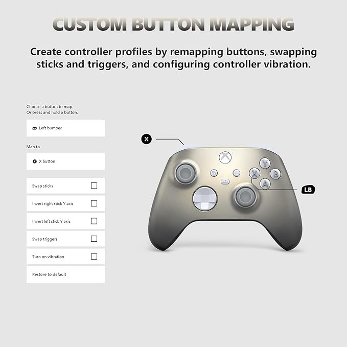 • Make the controller your own by customizing button mapping with the Xbox Accessories app.*